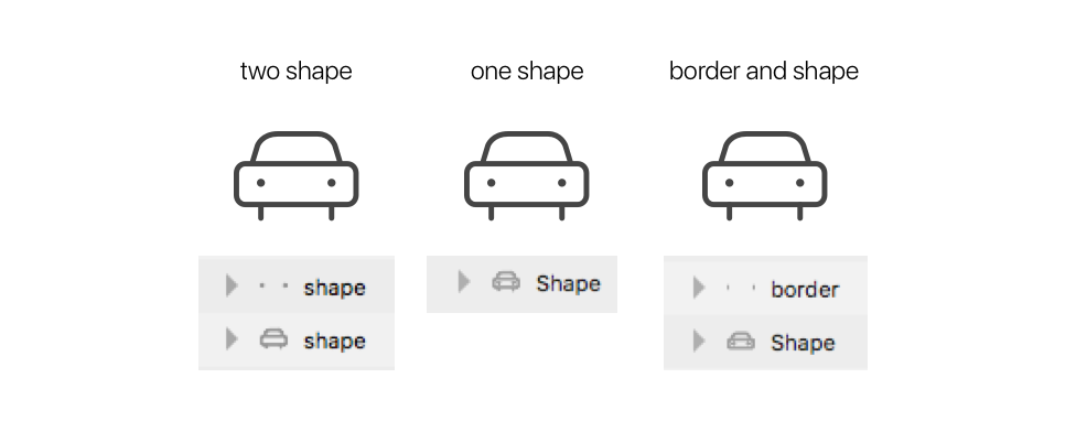 위 3가지 방법들은 옳고 그름이 없습니다. 다만 어떻게 이 아이콘을 나중에 활용할 것인가에 따라 만드는 방법이 달라지겠죠. 만약에 자동차 아이콘 안에 헤드라이트 색상을 바꾸고 싶다고 하면 위 방법 중 1번을 선택하면 될 것이고 선의 두께를 따로 조정하고 싶다 하면 3번 방식을 택하면 됩니다.