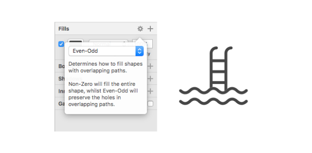 Fills 섹션에 가면 설정 아이콘이 있습니다. 클릭 시 Even-Odd가 디폴트 값인 것을 확인할 수 있습니다.