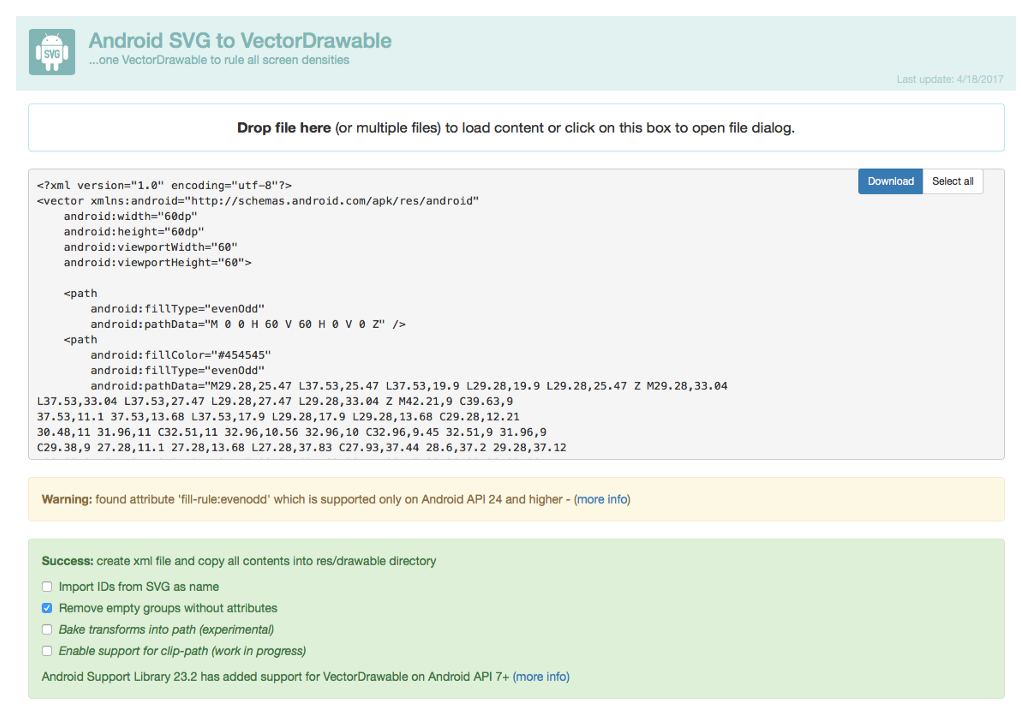 개인적으로 SVG에 대한 장점이 너무나도 크다고 생각하여 굳이 갈아타지 않을 이유가 없다고 생각합니다. 특히 Web 디자인을 할 때도 SVG를 저는 적극적으로 사용하시라고 권장하고 싶습니다. � 안드로이드 개발자에게 넘기기 전에 SVG 파일이 문제가 있는지 가볍게 확인하고 싶은 경우 아래와 같은 사이트를 추천해드립니다.