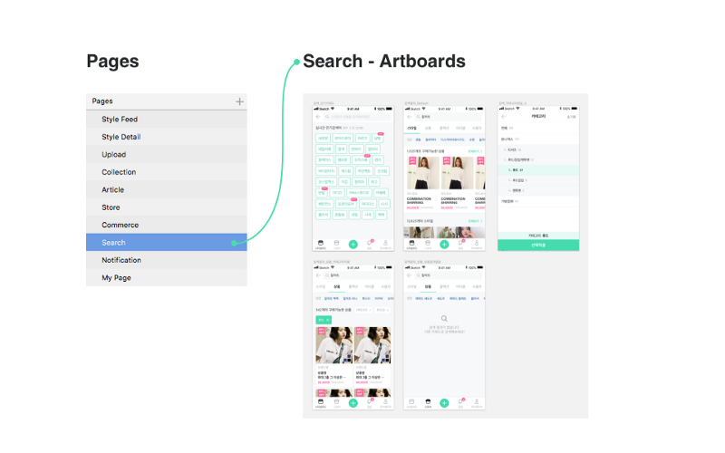 그래서 StyleShare 디자인팀에서는 Master.sketch라는 이름의 한 파일을 운영합니니다. iOS, Android 모두요.