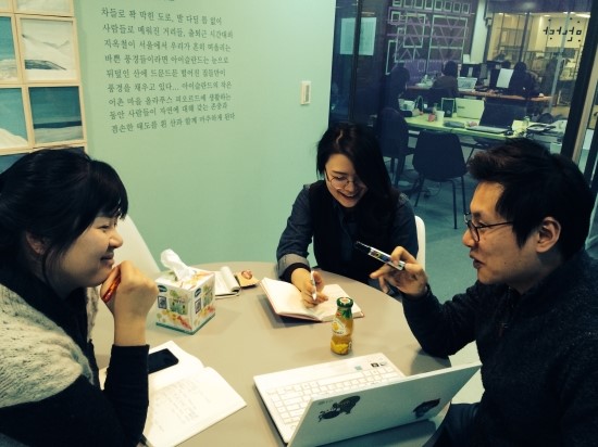 언론사와 기업 사회 공헌에서 경력을 가진 프로젝트사우나 고대권씨는 저희의 자문역이 되어주었습니다. 블로그 운영과 글쓰기에 대해 우리의 궁금증을 언제든지 물어볼 수 있는 전문가가 바로 옆 테이블에 앉아서 일한다는 건, 정말 큰 행운이지요. 고대권씨는 저희를 위한 소그룹 코칭을 해주며 지식과 경험을 열정적으로 나눠 주었습니다. 약간의 간식만으로 강의료는 패스하였고요.