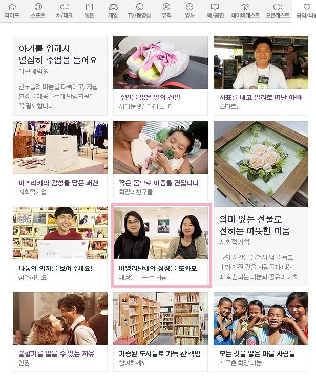 그러다 보니 뜻하지 않은 좋은 일들도 있었습니다. 저희의 일을 흥미롭게 봐준 위시루프에서 진저티프로젝트에 대한 인터뷰 컨텐츠를 써 주었는데, 이 인터뷰는 네이버 메인에 올라가는 놀라운 위력을 보여주었습니다. 경인씨와 선미씨의 얼굴이 네이버 화면에 떡 하니 등장했을 때의 기분은 정말 묘했습니다! 저희처럼 작은 회사에겐 참 감사한 일이지요.