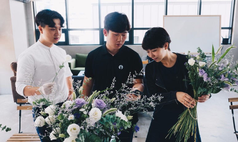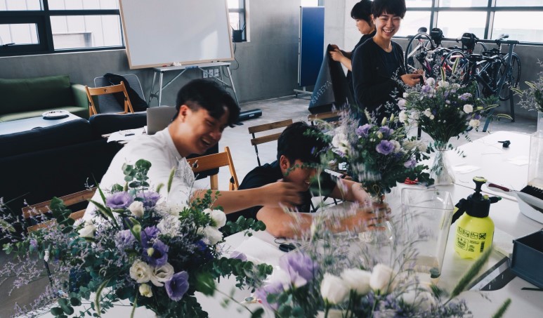 바라만봐도 이미 완성된 것 같이 예쁜 꽃들을 마주하고 싱글벙글한 더부스 팀! 저기 선생님... 그냥 이대로 선물해도 예쁠 것 같은데요?ㅋㅋㅋ