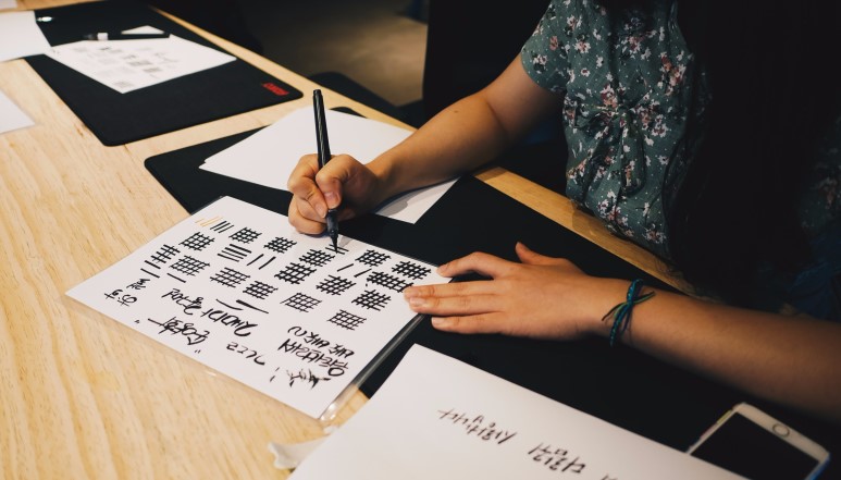 실제 캘리그라피 작가로도 활동하고 능력자 팀원과 함께 하는 캘리그라피 원데이 클래스! 펜 보다는 키보드가 익숙한 우리도 몇 시간만에 멋진 캘리그라피를 쓸 수 있을까요?