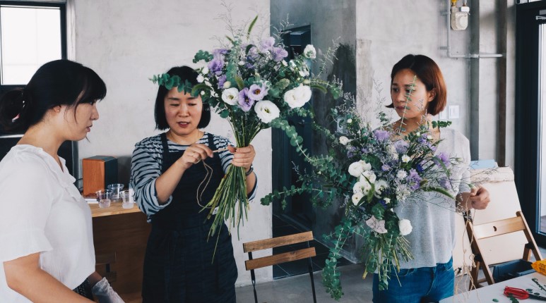문득 떠오르는 졸업식 풍경(?)가만히 꽂아만 둬도 예쁜 꽃을 괜히 망치는 건 아닐까 노심초사했지만, 다들 멋진 꽃다발을 완성했습니다. 과연 이 꽃을 누구에게 선물할까요? 어쨌든 선물 받는 분도 많이 행복하실 거예요:)