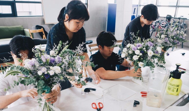 기념일마다 꽃다발은 사봤어도, 직접 꽃다발을 만들어본 적은 없죠? 직접 예쁜 꽃다발을 만들어보는 '꽃꽂이 원데이 클래스'가 더부스 캠퍼스 4층에서 열렸습니다!