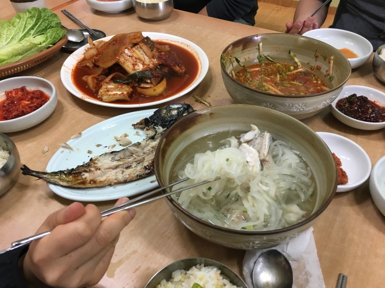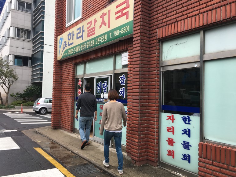 이른 아침부터 고생한 더부스 팀원들의 점심 식사는, 제주도 맛집으로 유명한 한라갈치국! 슴슴한 맛의 옥돔무국이 유명한 곳이야. 하지만 서비스로 나온 고등어구이도, 같이 나눠먹은 갈치조림도, 다 정말 맛있었어! 추천추천!