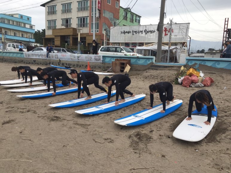 급격히 의욕이 사라진 팀원도 있었지만, 의외로 많은 사람이 보드 위에 서는 데 성공했다는 사실! 물론 선생님의 도움을 많이 받았지만, 잠깐이라도 타 본 파도는 정말 매력적이었어.