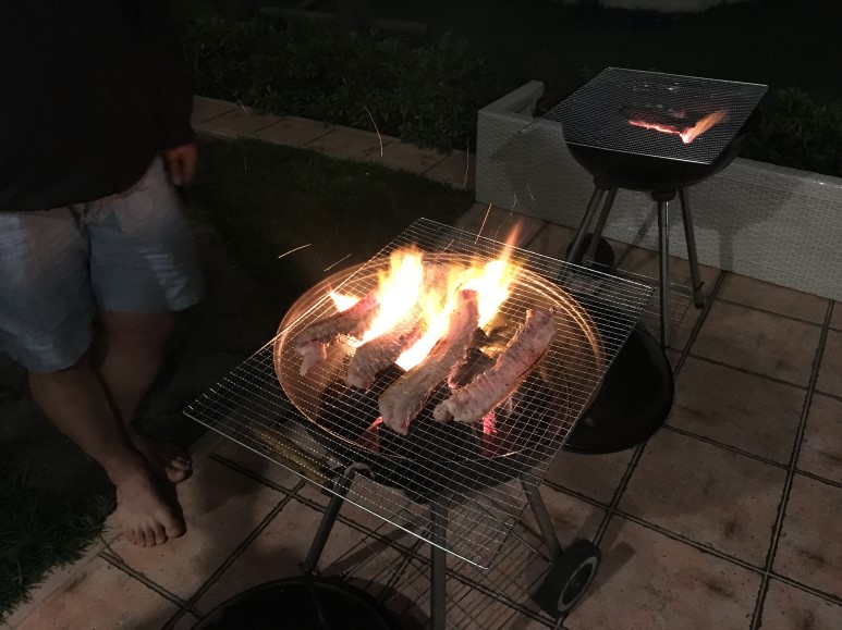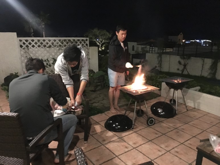 자 이제 놀았으니 다시 먹어야지? (응?) 자그마한 오름 옆에 자리잡은 숙소에 짐을 풀고, 본격적으로 고기를 구워보자! 제주도의 어마어마한 바람 덕에, 고기는 거의 직화 수준!