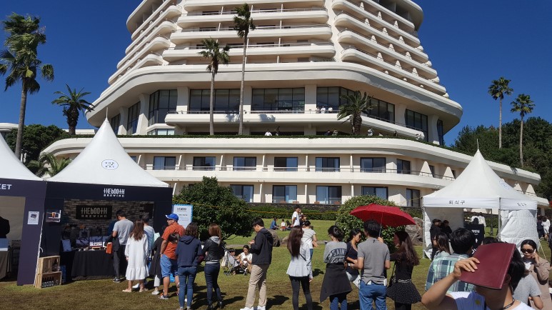 잠깐 눈을 붙인 것 같은데, 어느새 날이 밝았어! 오늘부터 이틀간은 제주도 하얏트리젠시호텔에서 코릿제주페스티벌이 있어. 미식 전문가 100명이 선정한 올해의 TOP 50 레스토랑과 제주의 TOP 30 레스토랑의 음식을 한 곳에서 맛볼 수 있는 멋진 기회지. 맛있는 음식엔 역시 맛있는 맥주 아니겠어? 그래서 더부스도 맥주들을 안고 제주도에 날아왔어.