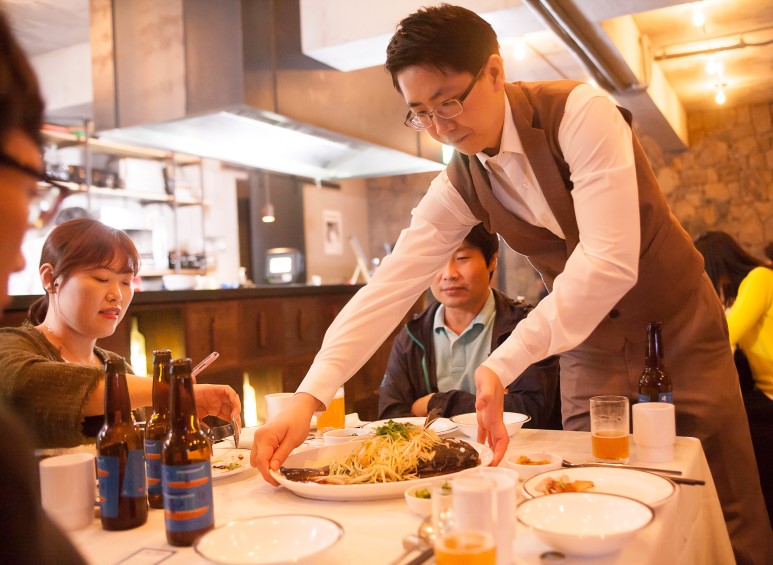 첫 날 저녁에는 해비치 호텔에서 한국 중식의 1인자! 서교동 맛집 진진의 왕육성 쉐프님의 라이브쇼가 있었어. 박정배 컬럼니스트의 사회로 진행된 라이브쇼의 주제는 '맥주와 어울리는 중식'. 대강 페일에일과 어울리는 음식으로 담백한 닭고기 냉채 샤오기와, 현장에서 바로 튀겨주신 진진의 멘보샤, 신선한 우럭을 담백쫄깃하게 찐 칭찡우럭이 서빙되었어.