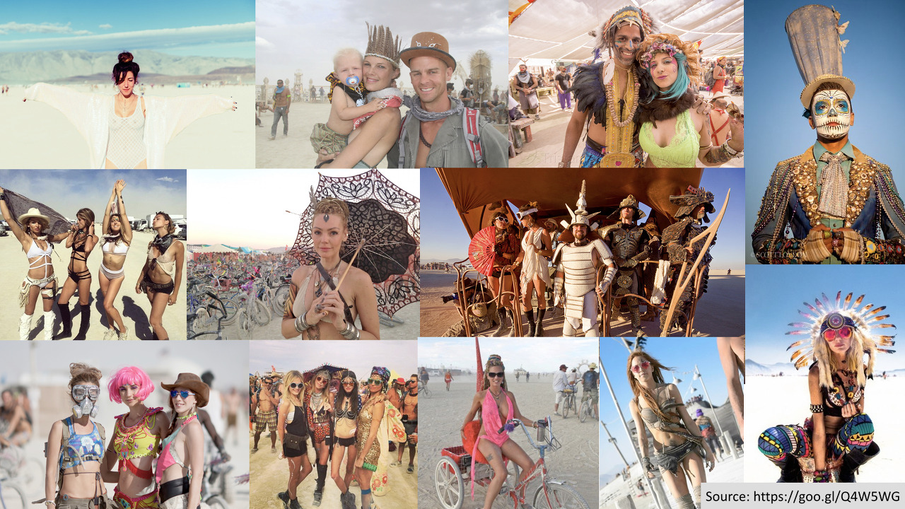 홈에서는 오롯이 나로 존재하고 나를 표현할 수 있기에 동화에 나오는 코스튬을 입던, 게임이나 영화에 나오는 복장을 하던, 아니면 아무것도 입지 않고 돌아다니던 그 모든 것은 100% 자유이다. 관광객모드가 아닌 대부분의 참가자들은 다른 사람이 무엇을 입던, 입지 않던 자연스럽게 생각하려고 하며 그 모든 것을 당연하게 인정한다. 다만 한가지 중요한 그라운드룰은 나만큼 다른 사람 하나하나도 각각으로 표현하고 존재할 수 있는 곳이기에 나의 어떠한 행동으로 인해 다른 사람의 그 존재와 자유에 침해가 되는 것만큼은 용납되지 않는다. 각각의 개인 하나하나가 자기 자신으로 존재하며 표현하지만 그 모든 사람들의 다양성이 그 자체로 공존할 수 있는 곳이 바로 버닝맨인 것이다.